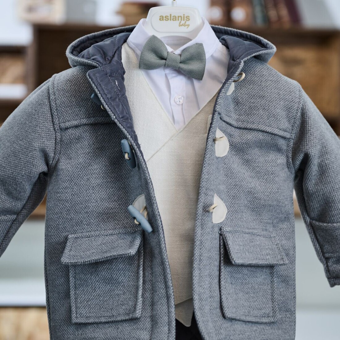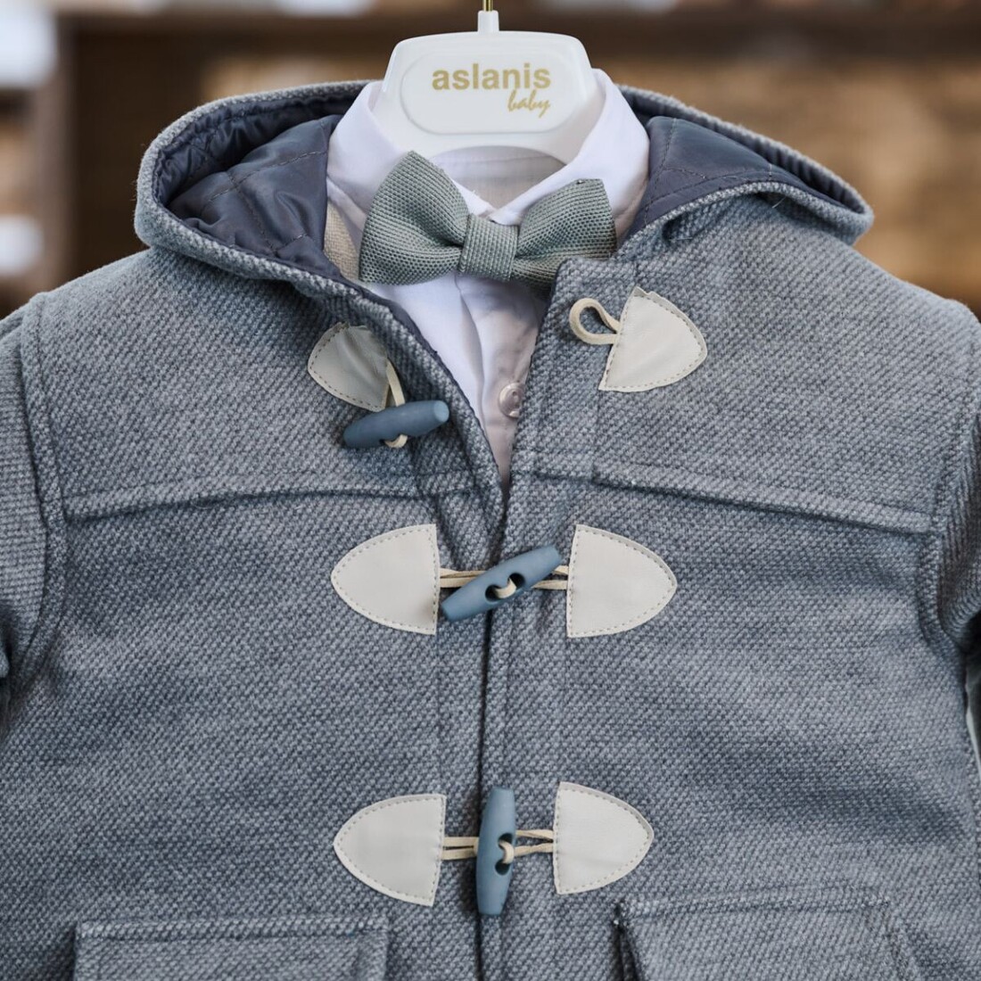- ύφασμα, σε κλασσική ανοιχτόχρωμη γκρι απόχρωση, δίνει το απόλυτο χειμερινό ύφος στο σύνολο. Το