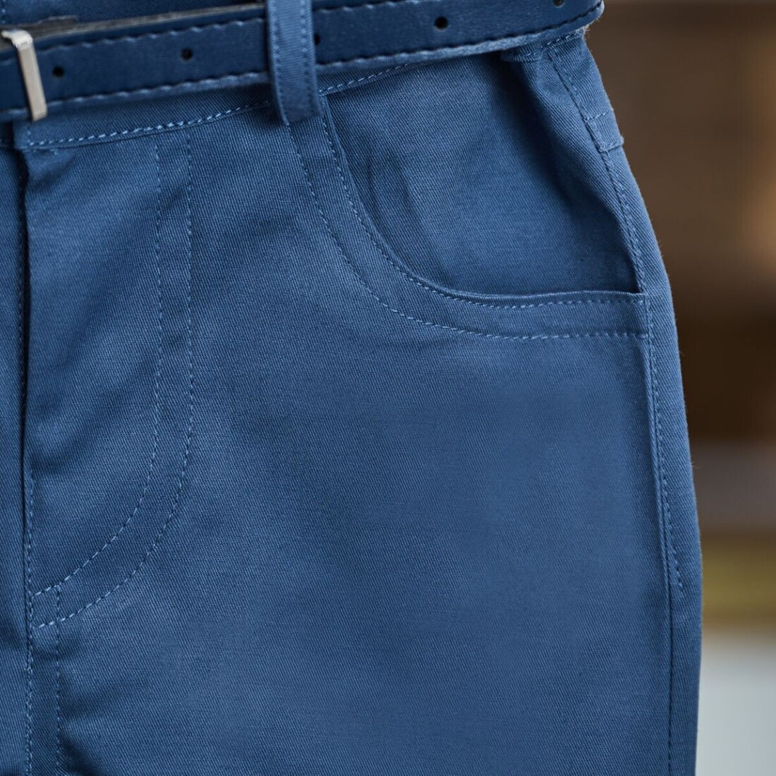 - λευκό βαμβακερό πουκάμισο και παντελόνι, σε ίσιο πατρόν, σε ραφ απόχρωση.