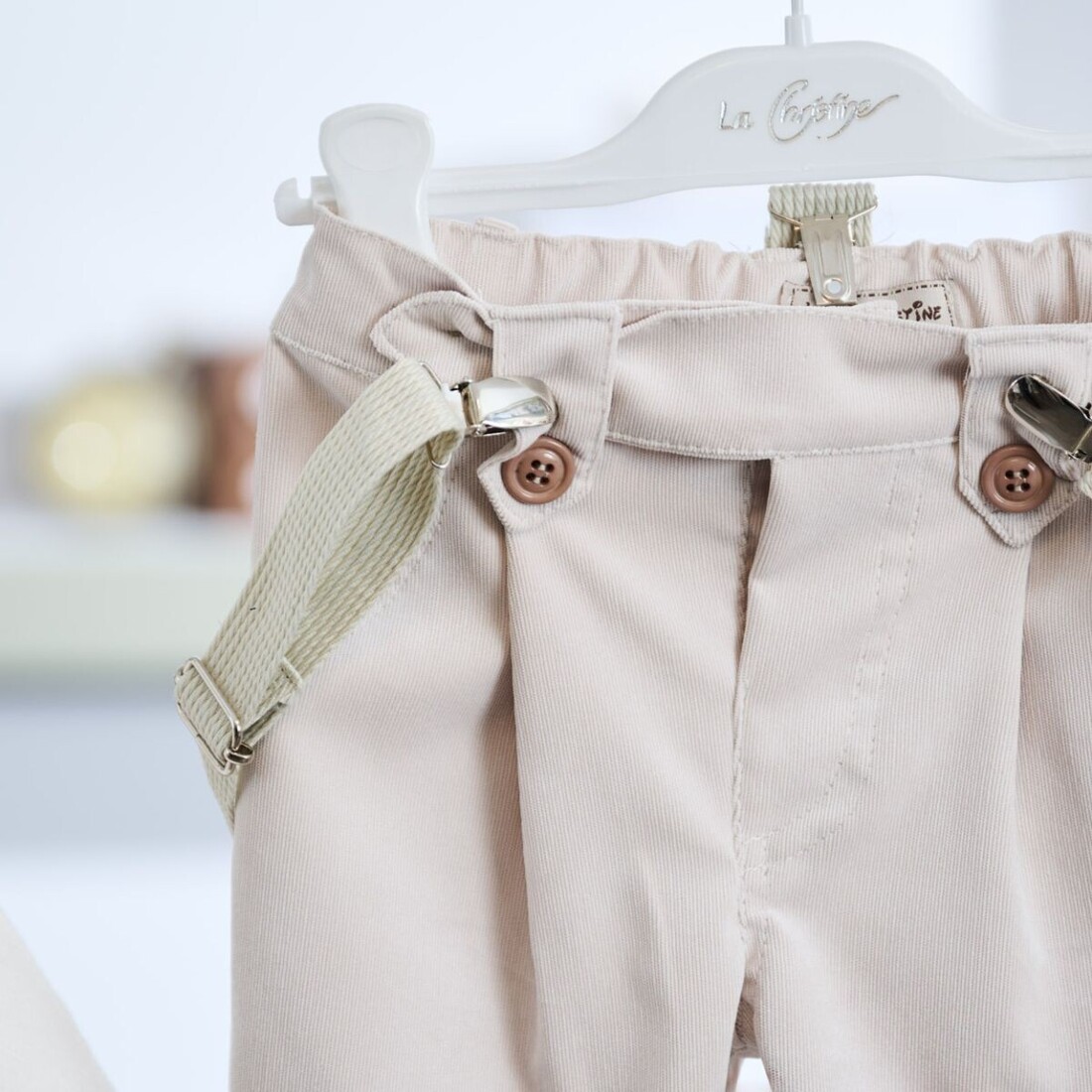 - Το παντελόνι, σε άνετη γραμμή και τα αξεσουάρ όπως το παπιγιόν και οι τιράντες ολοκληρώνουν με αριστοκρατικό ύφος το σύνολο.