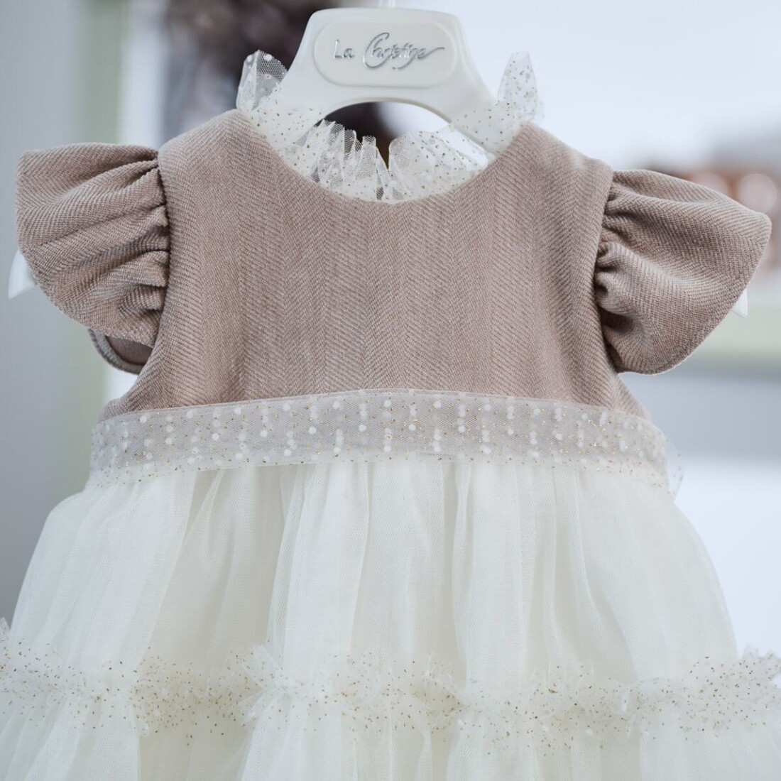 - ΚΩΔ: 25KW84:Ονειρικό φόρεμα βάπτισης στην απόχρωση της πούδρας.