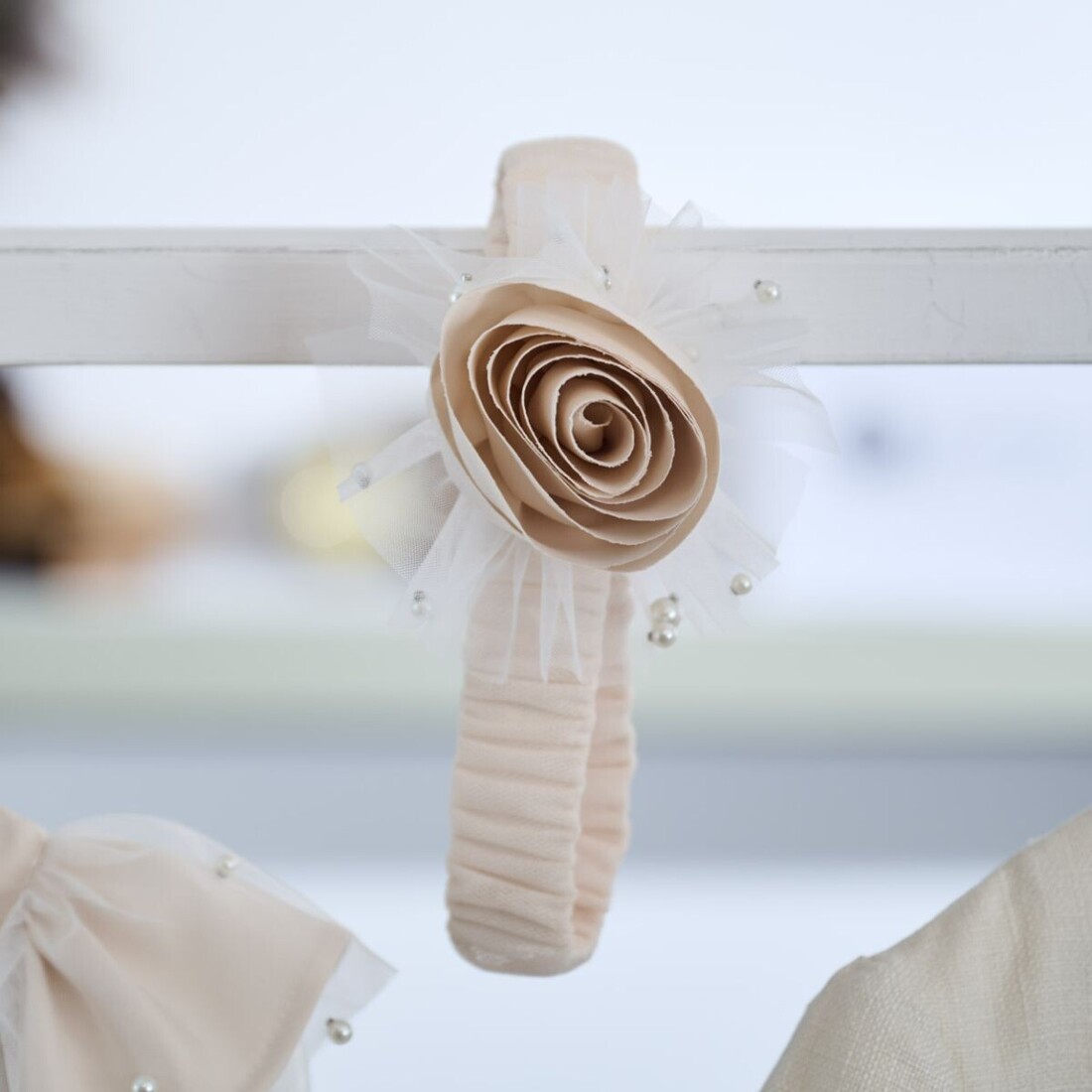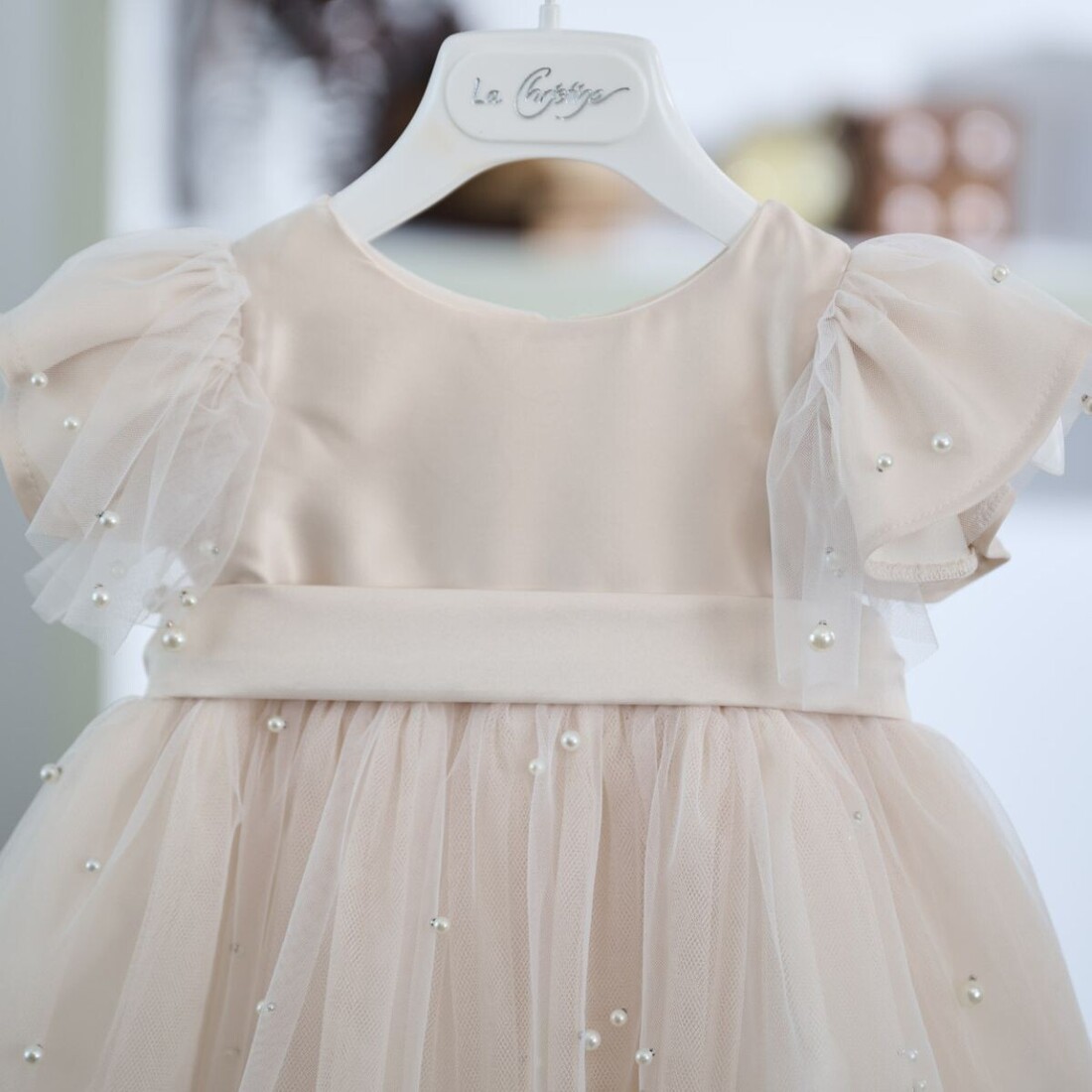 ΚΩΔ: 25KW86:Ονειρικό φόρεμα βάπτισης στην απόχρωση της πούδρας.