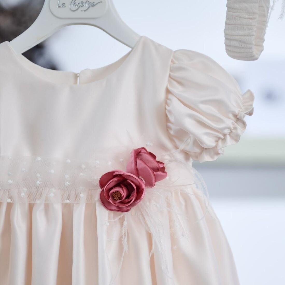 - 25KW92: Ένα ξεχωριστό φόρεμα σε αποχρώσεις της βανίλιας από απαλό σατέν ύφασμα.