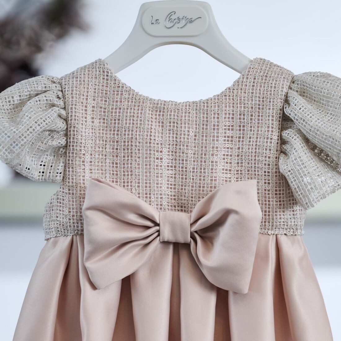 - 25KW98: Διαχρονικό φόρεμα βάπτισης, σε απαλή nude απόχρωση.