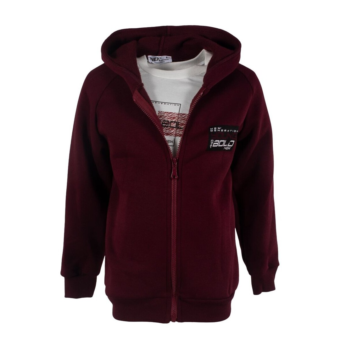 Ζακέτα με κουκούλα και φερμουάρ σε μπορντό χρώμα