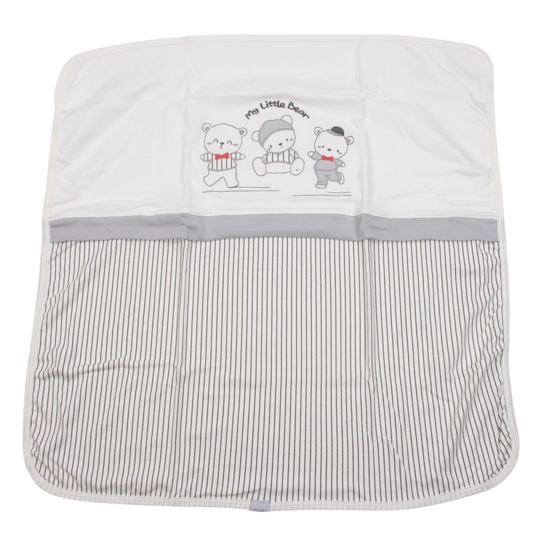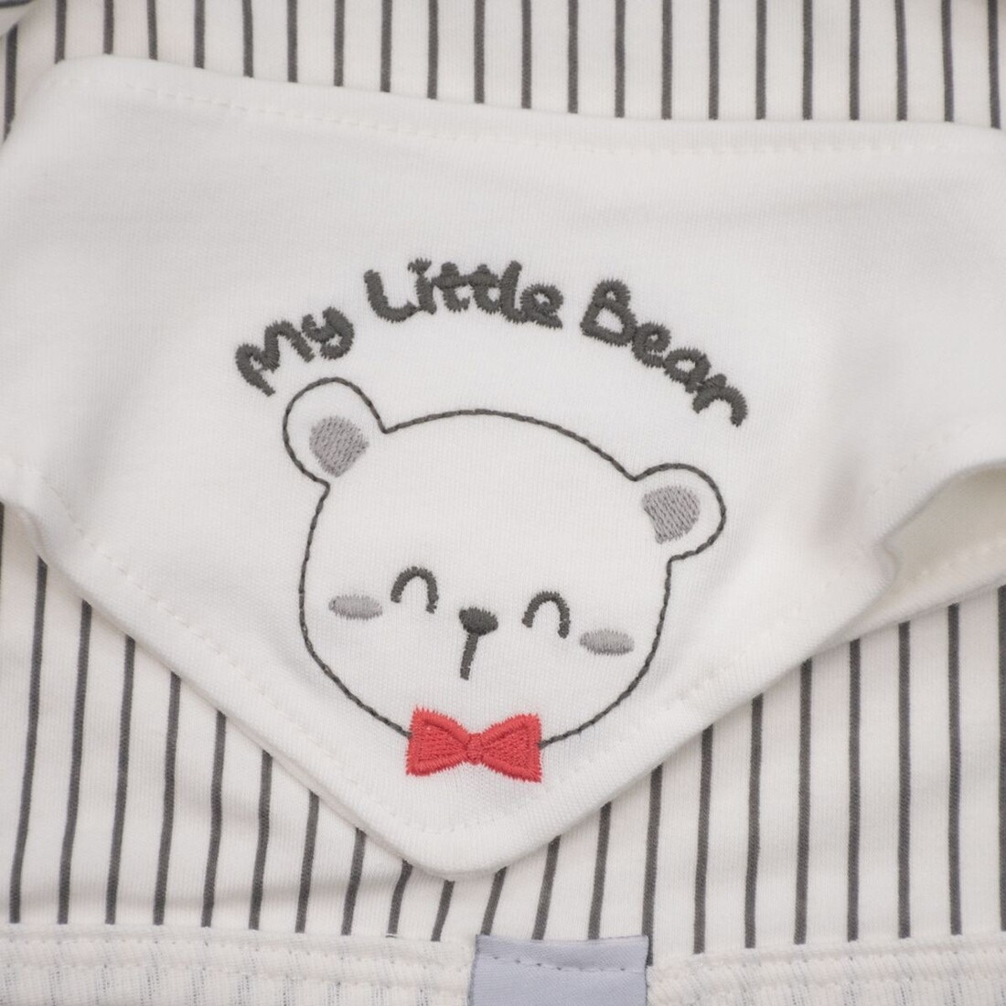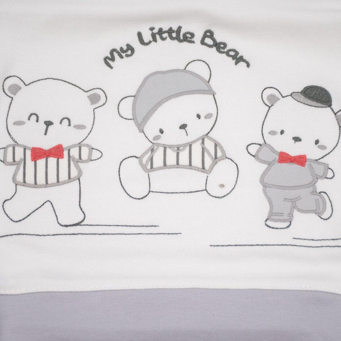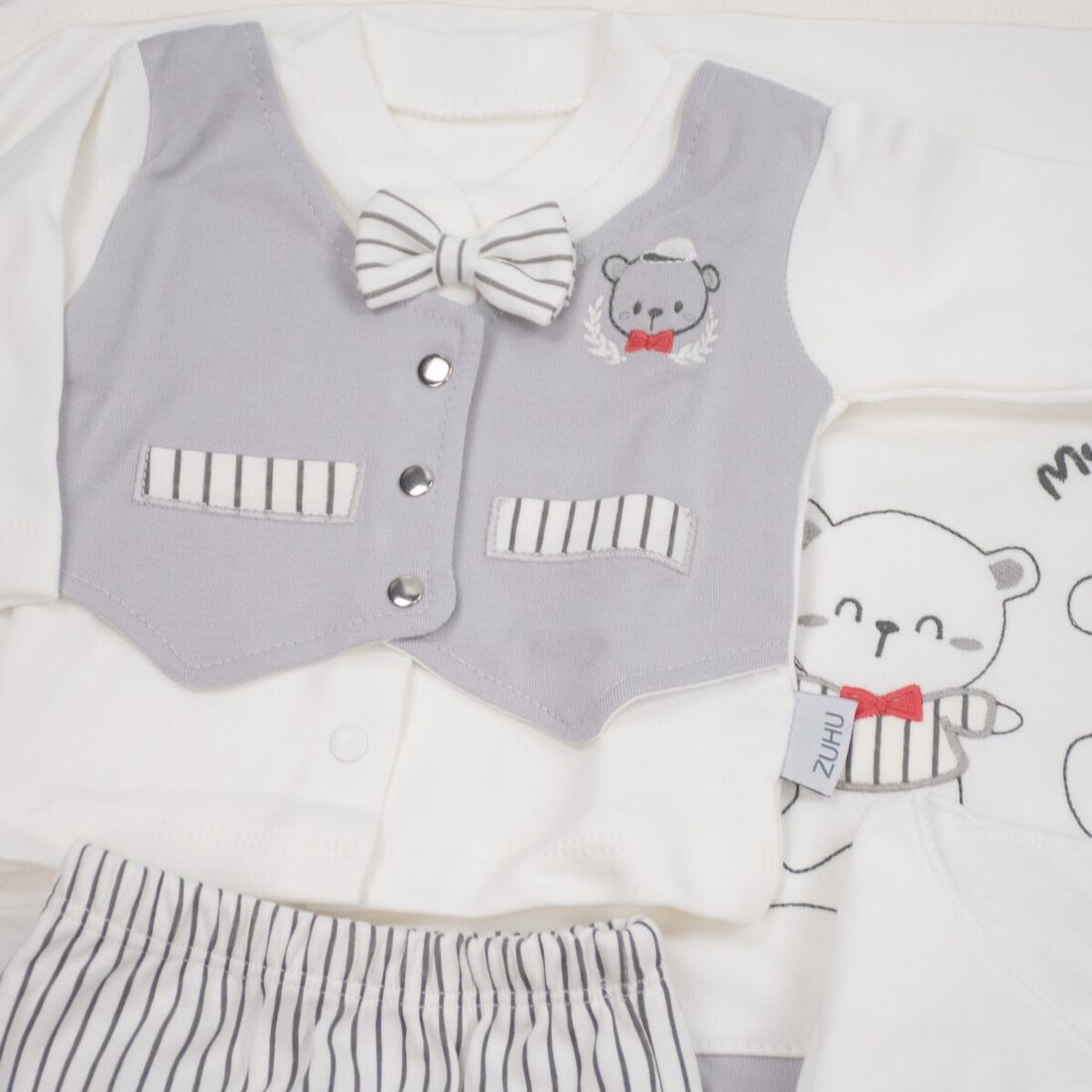 - Αποτελείται από : μπλουζάκι, παντελόνι, γαντάκια, σκουφάκι, σαλιάρα, βρεφικό κοντομάνικο και αμάνικο εσώρουχο, πανάκι ώμου, ζακέτα εσώρουχο και πάνα αγκαλιάς